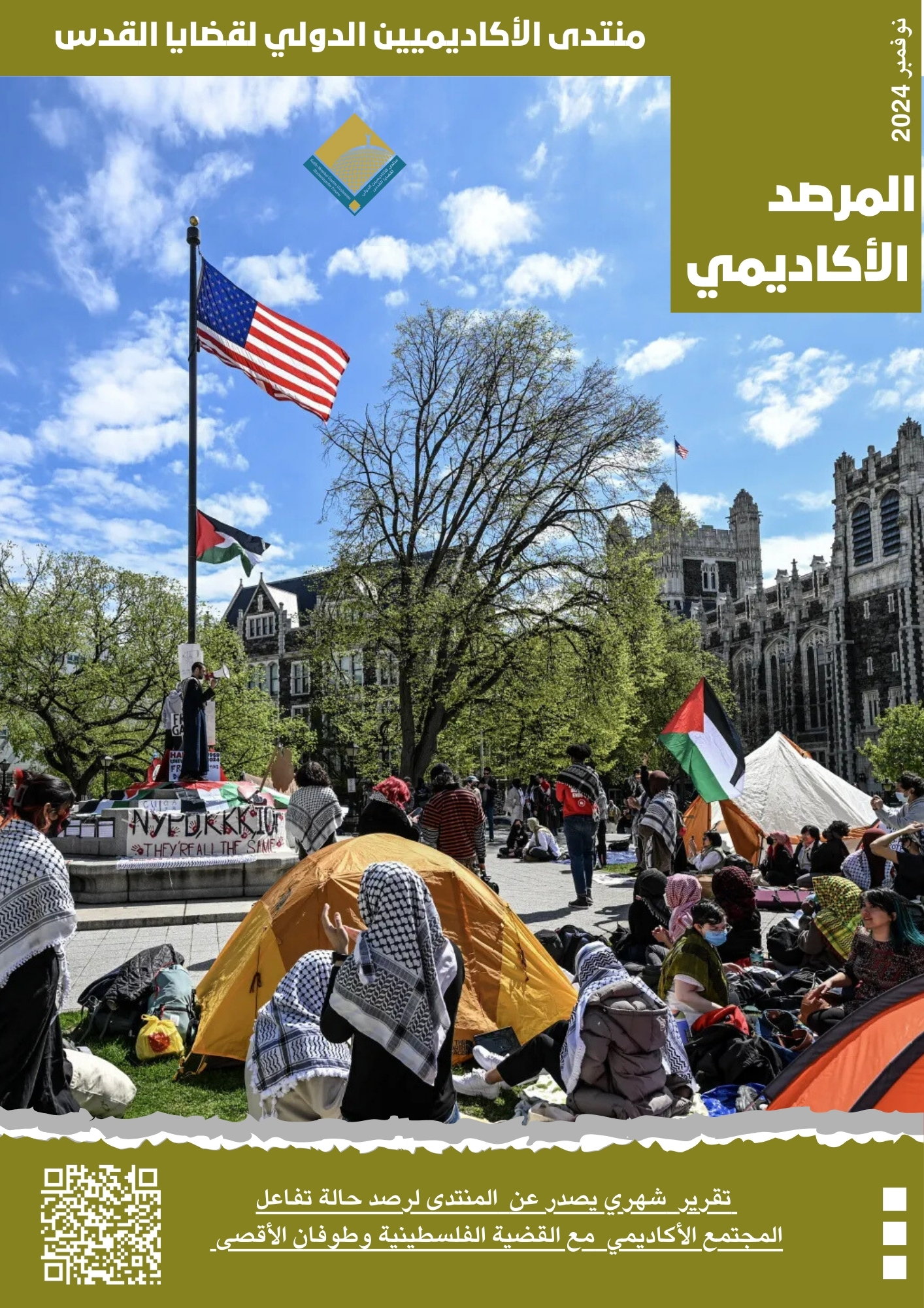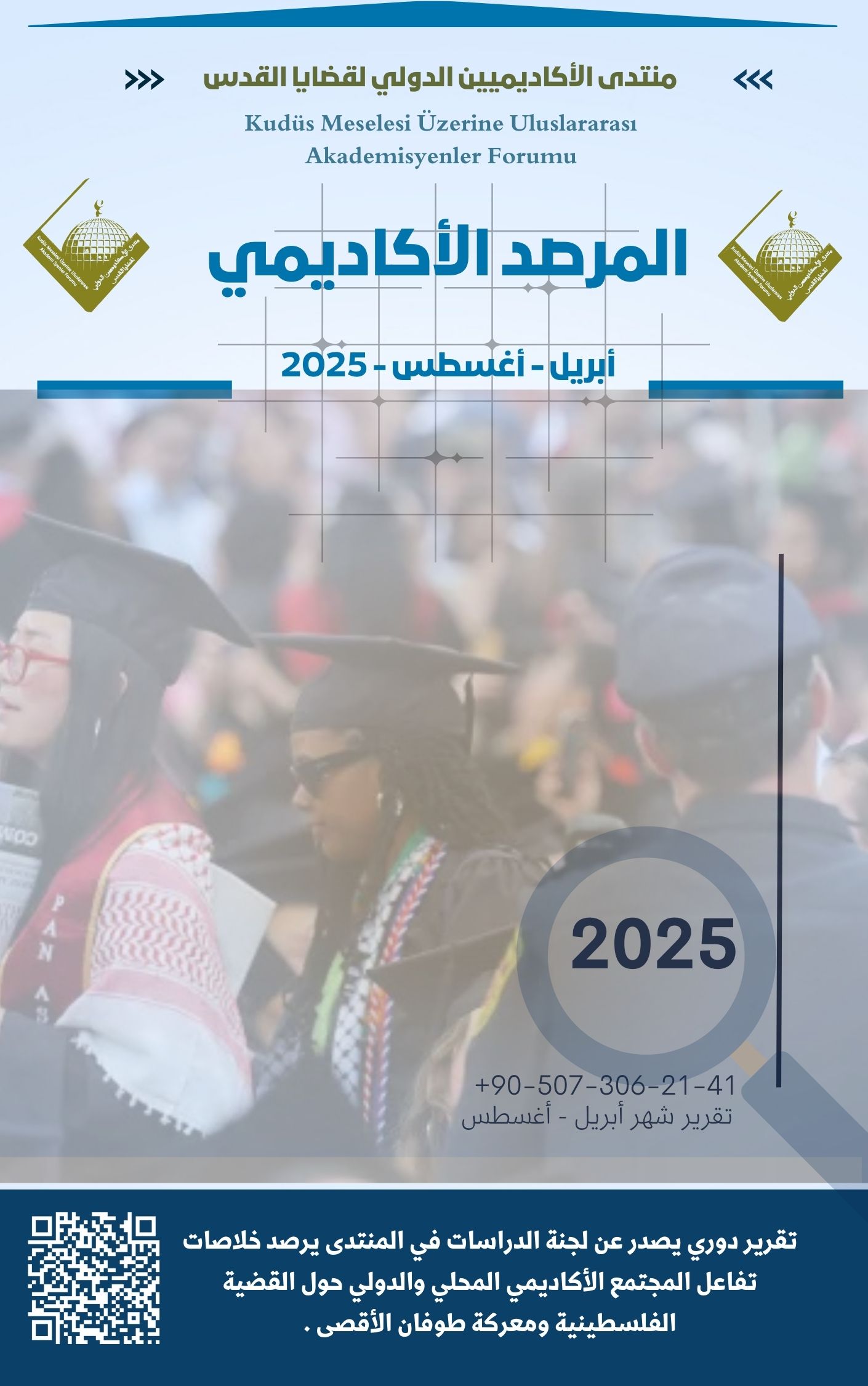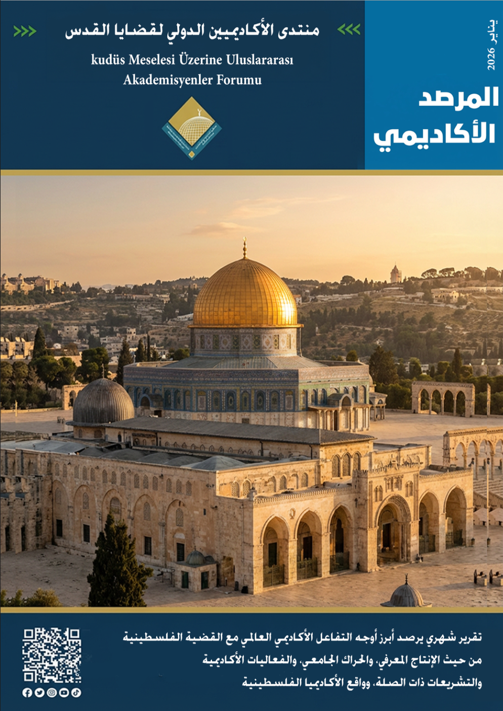 تقرير فصلي يصدر عن المنتدى، يُعنى برصد وتتبع الإنتاج المعرفي والأكاديمي المتفاعل مع القضية الفلسطينية في مختلف التخصصات واللغات في المجتمع الأكاديمي الفلسطيني والعربي والإسلامي والدولي . يهدف المرصد إلى تسليط الضوء على التحولات في الخطاب الأكاديمي تجاه فلسطين، وتوثيق المبادرات البحثية، والدراسات، والمؤتمرات، والمقالات العلمية، والمواقف المؤسسية التي تشكل ملامح الحراك المعرفي العالمي في ضوء التطورات الفلسطينية المتسارعة.