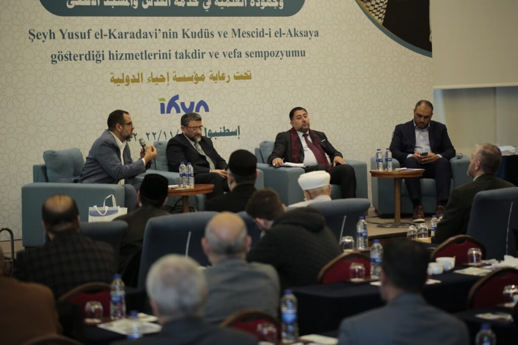 - الدكتور عبد الجليل الب كراي، مدير دائرة المجتمعات والدول الإسلامية في رئاسة شؤون الديانات التركية، الذي تناول في كلمته حضور الشيخ القرضاوي في المشهد الإسلامي العالمي ودوره في دعم قضايا الأمة وفي مقدمتها القدس.