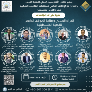 ناقشت الندوة دور الحراك الطلابي العالمي في دعم فلسطين، وآليات.....